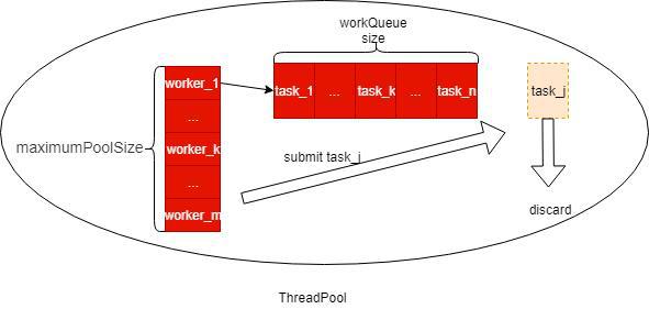 - 丢弃任务(DiscardPolicy),任务被直接丢弃,不会抛异常报错;
