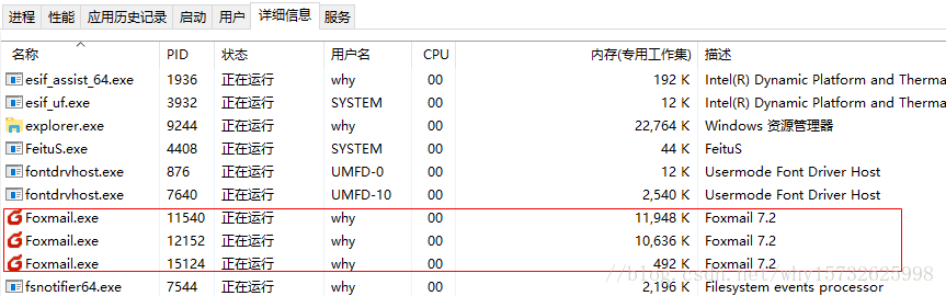 注意:图片中的下面三个Foxmail线程不一定是我所说的功能,但是就是这个效果。