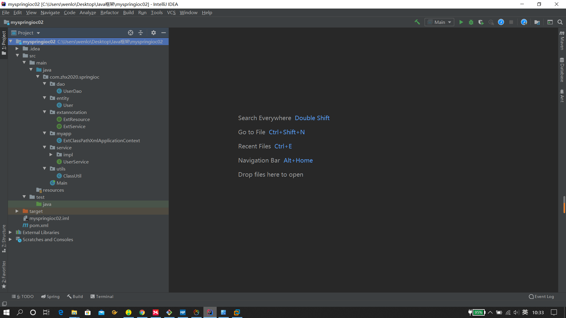 List<Class<?>> classes = new ArrayList<Class<?>>(); boolean recursive = true; String packageDirName = packageName.replace('.', '/'); Enumeration<URL> dirs; try { dirs = Thread.currentThread().getContextClassLoader().getResources(packageDirName); while (dirs.hasMoreElements()) { URL url = dirs.nextElement(); String protocol = url.getProtocol(); if ("file".equals(protocol)) { String filePath = URLDecoder.decode(url.getFile(), "UTF-8"); findAndAddClassesInPackageByFile(packageName, filePath, recursive, classes); } else if ("jar".equals(protocol)) { JarFile jar; try { jar = ((JarURLConnection) url.openConnection()).getJarFile(); Enumeration<JarEntry> entries = jar.entries(); while (entries.hasMoreElements()) { JarEntry entry = entries.nextElement(); String name = entry.getName(); if (name.charAt(0) == '/') { name = name.substring(1); } if (name.startsWith(packageDirName)) { int idx = name.lastIndexOf('/'); if (idx != -1) { packageName = name.substring(0, idx).replace('/', '.'); } if ((idx != -1) || recursive) { if (name.endsWith(".class") && !entry.isDirectory()) { String className = name.substring(packageName.length() + 1, name.length() - 6); try { classes.add(Class.forName(packageName + '.' + className)); } catch (ClassNotFoundException e) { e.printStackTrace(); } } } } } } catch (IOException e) { e.printStackTrace(); } } } } catch (IOException e) { e.printStackTrace(); }