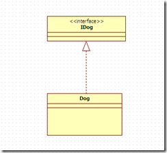 表示方法:空心三角形箭头的虚线,实现类指向接口